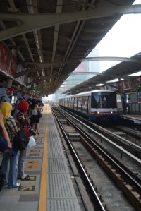 Selanjutnya, kita tinggal merhatiin kemana arah tujuan kita. Awas jangan salah arah, haha bisa-bisa nyasar ke stasiun lain. Tapi, kalopun nyasar aah jangan panic, tinggal beli tiket balik aja. Kesasarnya juga hitung-hitung jalan-jalan toh 😀 Nah, petunjung arahnya tersedia dalam aksara latin kok. Jangan khawatir yang gak bisa baca tulisan keriting ala Thailand. Juga, petugas banyak kok tersebar di tiap stasiunnya, jadi kalo bingung tinggal tanya aja. Pengalamanku, petugasnya sedikit-sedikit bisa menerangkan dalam bahasa Inggris. Kalopun dia pake bahasa tarzan, dia ngerti kok apa yang kita omongin. Coba aja kalo gak percaya ^^