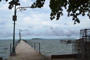 Kok sepi ya? Di dermaga, nggak ada satupun orang yang nongkrong di sana *idiiih, ngapain juga nongrong panas-panas gitu :P* di dermaga cuma tersisa satu kapal doang. Itupun kayaknya rusak. Gak lama kemudian ada ibuk-ibuk yang datang mendekat dan menawari kami kapal. “Nak sewa kapal ya?” tawarnya. Bang Ogut ambil alih negosiasi. “Iya, mau ke Pulau Lengkuas. Berapa?” tanya Bang Ogut.