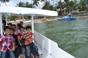 Ucok kali ini libur dulu jadi supir. Gantinya, Bang Ogut (suami Diana –adiknya kak Butet) yang bawa mobil. Kebetulan hari ini Bang Ogut (sengaja) cuti untuk ngajakin aku jalan-jalan. *Arigato Bang!* Bersama kedua anak mereka (Abing dan Dio + baby sitter), juga Bicik dan adek Ratih plus Kak Butet dan Kakak Zaki (kali ini Abot tinggal di rumah), kami bergegas meninggalkan Gantung menuju Tanjung Pandan.