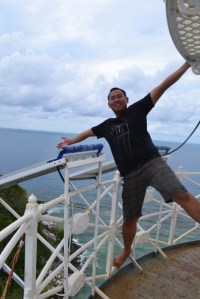 Trus ya, bisa jadi aku nggak merasa capek karena di tiap lantai, melalui jendela-jendelanya, aku disuguhi pemandangan luar biasa. Percayalah, di tiap-tiap jendela pada masing-masing lantai, kita akan mendapati pemandangan yang berbeda! Terdengar mistik? Nggaklah… kan Mercusuar itu berbentuk tabung. Tangganya juga melingari dinding dalam mercusuar. Nah, walau posisi jendela terlihat simetris dari luar, dari dalam kan tetangga berbentuk melingkar sehingga pemandangan dari jendela ikutan memutar. Walaupun kelak akan menemukan pemandangan yang sama, tapi ketika dilihat dari lantai yang berbeda (semakin atas) maka sudut pandang kita pun akan berubah. Luar biasa!