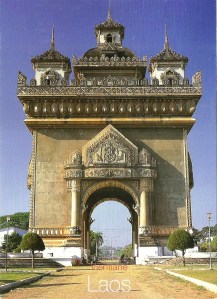 Kartu pos bergambar salah satu monument di Vientiane ini dikirim oleh Mbak Susan & Mas Adam langsung dari Laos ketika mereka melakukan perjalanan ke sana. Aku beruntung bisa mendapatkan kartu pos keren ini karena ikutan kuis yang diadakan ketika 15 menit menjelang deadline. Inilah yang dinamakan rezeki. Koneksi yang tiba-tiba ngadat ternyata tidak menghalangi perjalanan kartu pos ini untuk sampai ke Palembang. Menyenangkan!