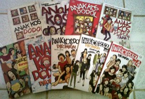 Terakhir, Anak Kos Dodol Vol. 4 adalah hiburan yang asyik. Harapanku, dalam waktu dekat akan keluar lagi komik edisi terbaru. Hihi. Oh ya, ini dia koleksi Anak Kos Dodol series yang aku punya. Lengkap!!! Dan… sttt… di Anak Kos Dodol 1 ada endorsmentku loh *pamer* hwhwhw. 😉