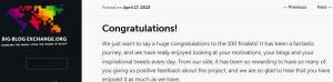 Ucapan selamat dari The Big Blog Exchange atas terpilihnya 100 besar,