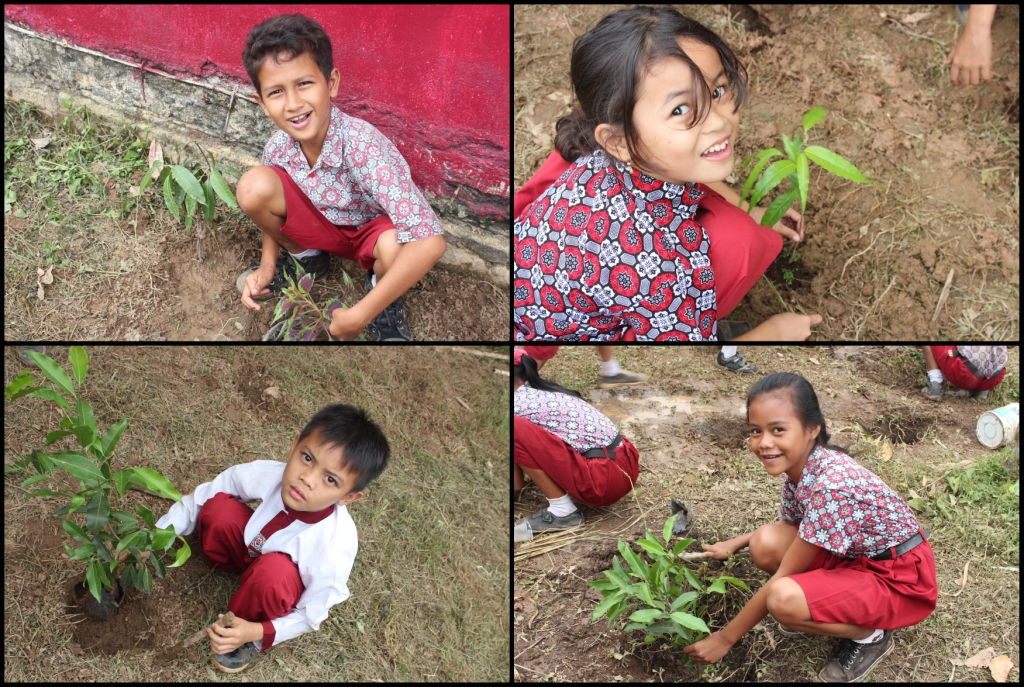 Kegiatan hari itu ditutup dengan menanam pohon yang sudah disiapkan oleh mbak Fetty. Siapa sangka, kegiatan menanam pohon ini ternyata kegiatan yang paling ditunggu sama para murid. Bahkan ketika pagi hari aku masuk ke kelas 4 pun sudah ditanyain, “kak kapan kita menanam pohon?”
