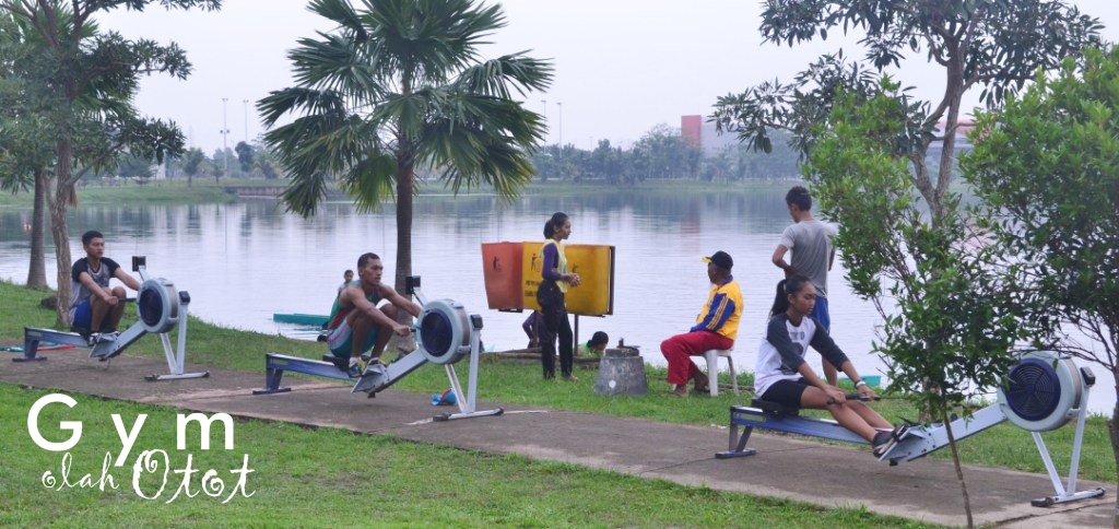 Belum selengkap taman gym yang ada di Kambang Iwak sih, cuma yang begini pun lumayan. Olah raga tarik-tarik beban kayak gini di pinggir danau itu sedap euy. Kalo kebetulan punya beban hidup, ya ditarik juga sekalian dan langsung buang ke danau. Gitu aja kok repot. Kurang lengkap? Bawa aja barbell sendiri dari rumah. Kalo gak punya, coba colong punyanya Agung Herkules. Lumayan, jagat perdangdutan akan lebih tenang jadinya. *ip yu nouw wat ai men*