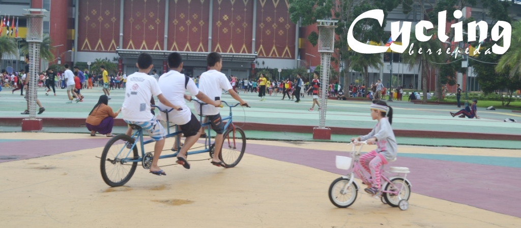 Karena dari rumah aku sudah bersepeda, jadi sesampai di stadion aku jadi pengamat aja. “Wah tuh sepeda unyu juga, warnanya pink.” Atau, “kalo naik sepeda tiga gandeng gitu, enak paling belakang, pura-pura kayuh aja, biar dua yang di depan bekerja keras.” Hehe. Yang jelas, di kawasan stadion banyak banget jasa penyewaan sepeda dadakan. Jadi, jangan khawatir bagi yang gak kebeli sepeda eh maksudnya gak bawa sepeda, di sini masih bisa tetap sepedaan kok.