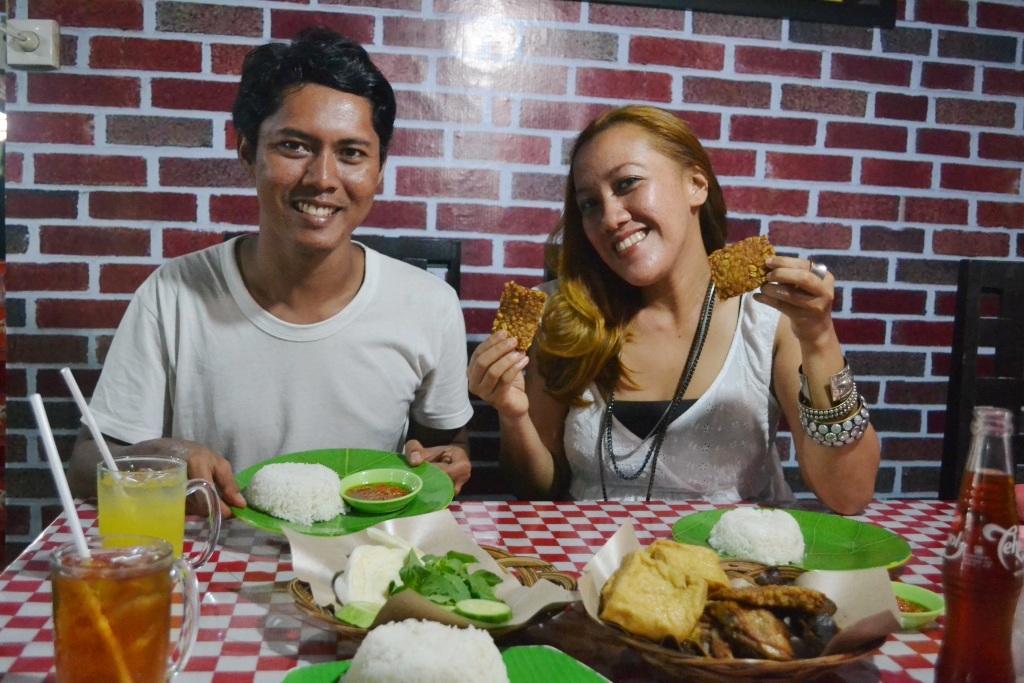 Kita langsung meluncur ke tempat makan. Niatnya makan soto eh tutup. Jadilah, makan di bebek S*amet. (kenapa di kasih * sih? Soalnya mau dikit nyela haha). Kita datang dengan sedikit kekecewaan. Udah stok bebeknya habis eh pas pesen tahu rasanya tawar banget kayak makan tahu mentah. Tahu begitu mending makan tahu (di tempat lain). 🙂 eh, tetep fun dan kenyang sih. Mubazir kan kalo nggak dihabisin.