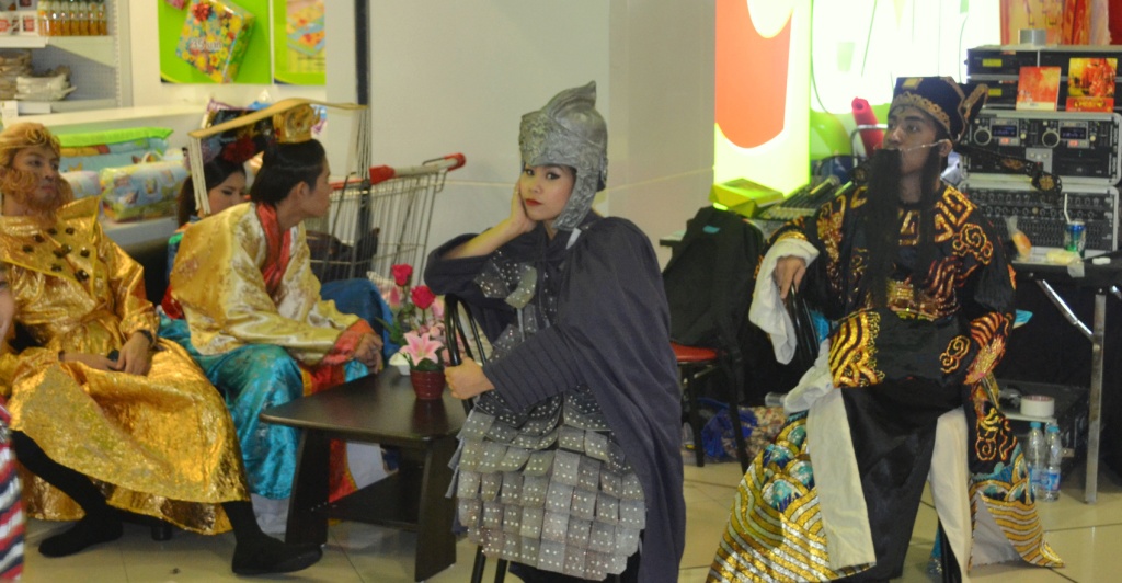 Nah, begitu menyusuri lantai dasar, aku menyaksikan sekelompok pemuda yang latihan nari. Kayaknya sih untuk persiapan pertunjukan sore hari atau malamnya. Rombongan parade yang tadi aku lihat dari lantai atas pun sepertinya tengah beristirahat. Hihi, lucu sekali melihat mereka berpakaian tradisional tionghoa seperti ini. Ada yang jadi kera sakti juga!