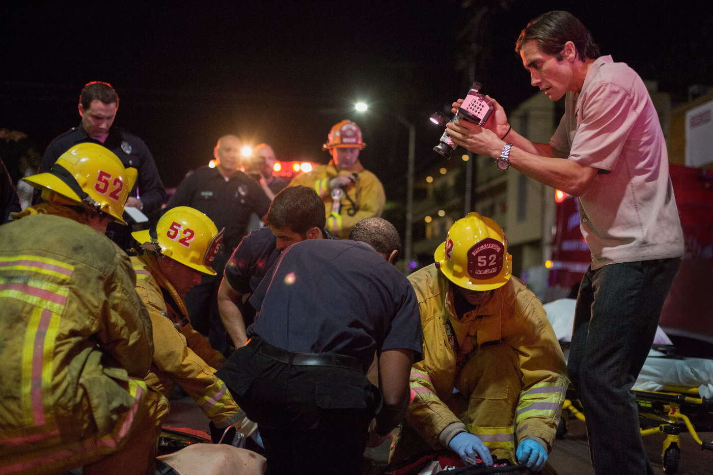 Ada satu kelebihan Louis dari tim peliput independen saingannya. Louis berani mendekat sedemikian rupa mengarah ke korban dan lokasi terjadinya sebuah peristiwa. Walaupun berhadapan dengan pihak kepolisian harus dijalanina. Hasil liputan pertamanya menarik minat Nina (Rene Russo), produser TV berita yang membeli dan memuji hasil liputannya itu. Berbekal uang tersebut, Louis berinvestasi dengan membeli kamera video yang lebih layak dan mulai mencari seorang asisten.