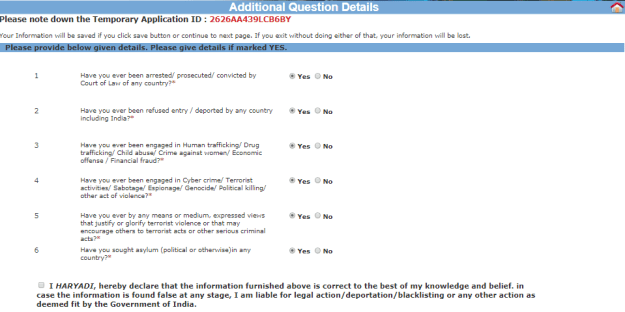 Nah di bagian ini yang harus mendapatkan perhatian khusus. Saat kita diminta untuk menuliskan Reference Name in India. Gimana tuh kalau nggak ada kenalan di India? Jawabannya, tulis saja alamat salah satu hotel/hostel tempat di mana kamu akan menginap. No telpnya jangan lupa, ya! Atau kalau punya temen komunitas (kayak saya nih di postcrossing atau couchsurfing) mintain aja alamatnya. Bilang hanya untuk pengajuan visa.