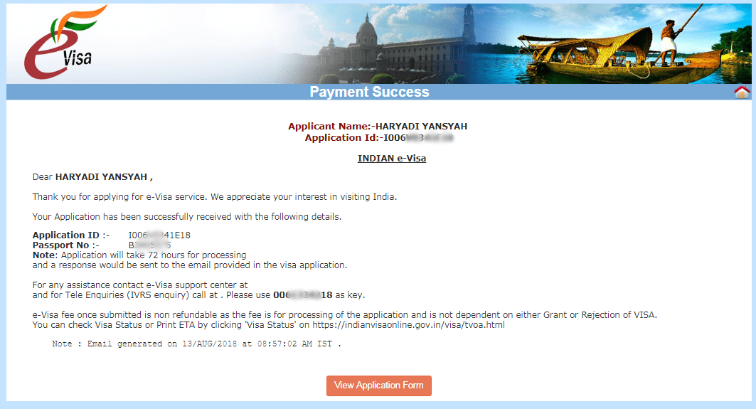 Payment success Diterbitkan 13 Agustus 2018 di 1063 × 575 dalam [Update Desember 2022] 10 Langkah Mudah Proses Visa On Arrival India Secara Online ← Sebelumnya Selanjutnya →