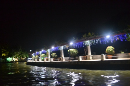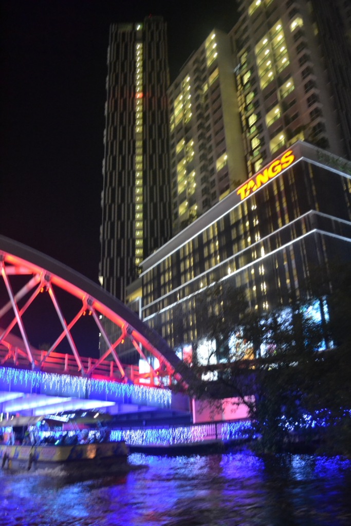 Nggak ding, walaupun selfie berjalan, aku rasa semua orang sangat menikmati perjalanan menggunakan kapal tersebut. Di sisi kiri dan kanan terlihat semua bangunan bermandikan cahaya lampu. Hotel-hotel berbintang tak mau kalah. Guratan cahaya yang menyelimuti bangunannya bikin mata seger.