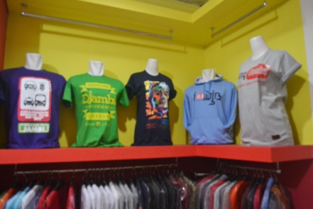 Ternyata banyak juga barang yang dijual di Temphoyac. Paling umum tentu saja kaos distro keren dengan berbagai macam ukuran dan motif. Tentu saja corak yang terlihat di kaosnya lebih mengedepankan ciri khas kota Jambi. Harga kaos di sini juga cukup murah. Satu potongnya dihargai Rp.65.000 saja.