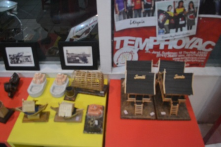 Rumah adat dan sampan dalam bentuk miniatur. Cakep!