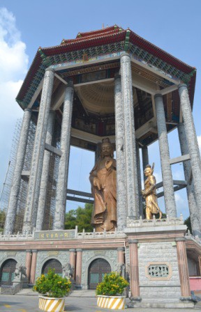 Tak jauh dari tempat parkir mobil itulah berada patung Dewi Kuan Yin. Patungnya gedeeee banget! Dan takkala melihat patung ini, ingatanku akan serial Kera Sakti makin menjadi-jadi. 🙂 Patung ini dilindungi oleh pavilion octagonal yang dibangun belakangan dan selesai pada tahun 2009. Sebelumnya, patung dewi Kuan Yin ini berdiri tanpa pelindung apapun. Untuk melihat seberapa besar patung ini, coba lihat foto ini.