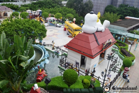 Namanya juga Snoopy World ya, semua serba Snoopy! Patung Snoopy paling besar nampak berada di atap gerbang yakni berukuran 5,5 x 3,3 meter. Gedeee banget!