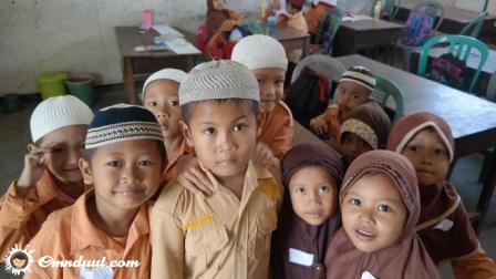 Anggra dengan murid-murid berpeci lucu dan jilbab kucar kacir hehehe