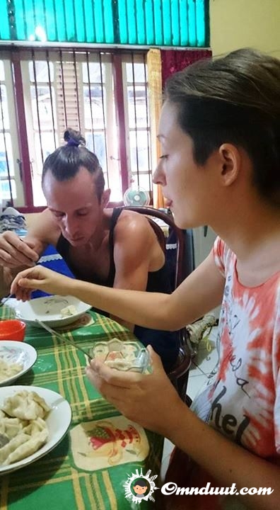 Mereka sarapannya buah. Kalo siang kayaknya kadang makan kadang nggak. Nah kalo malam makannya ya itu, semacam dumpling, atau nasi goreng (sore), kadang malam juga makan nasi + sayur. Biasa aja sebetulnya hehe.