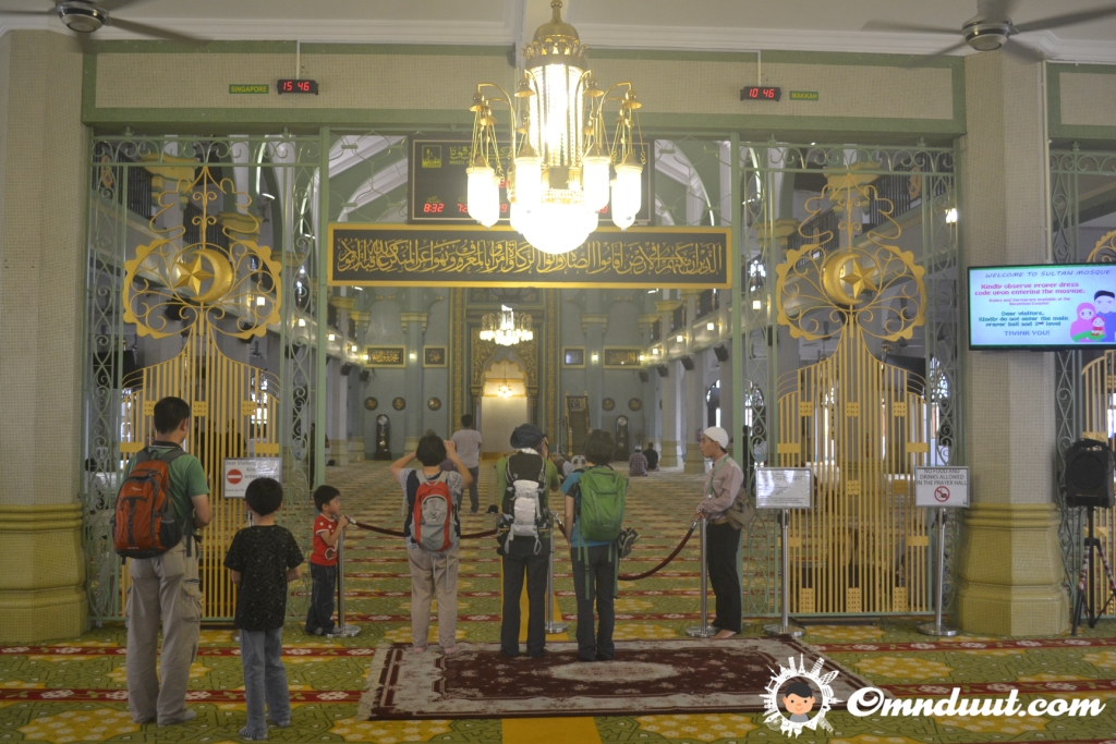 Di pemberhentian selanjutnya, kami diturunkan di sekitaran Kampong Glam. Di sinilah berdiri Masjid Sultan, masjid pertama yang dibangun di Singapura oleh masyarakat Jawa! Uwow, warbiyasak! Masjidnya sendiri udah berusia ratusan tahun (sejak pertama dibangun pada tahun 1826) namun masih berdiri kokoh hingga sekarang. Salut dah!