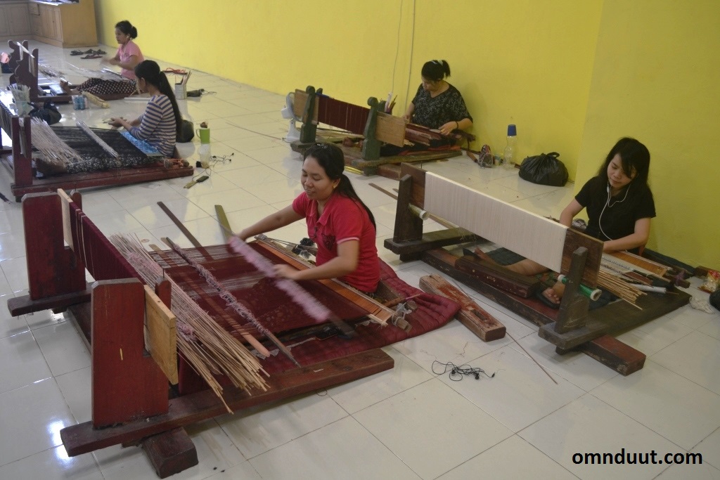 “Heh kok itu handphone ditempel di kuping gitu, apa gak capek?” batinku saat melihat seseorang pekerja pembuat kain songket di Fikri Collection.