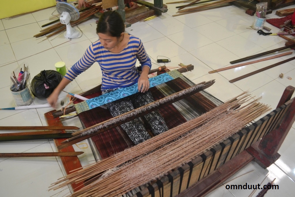 Salah seorang penenun sedang serius mengerjakan pesanan
