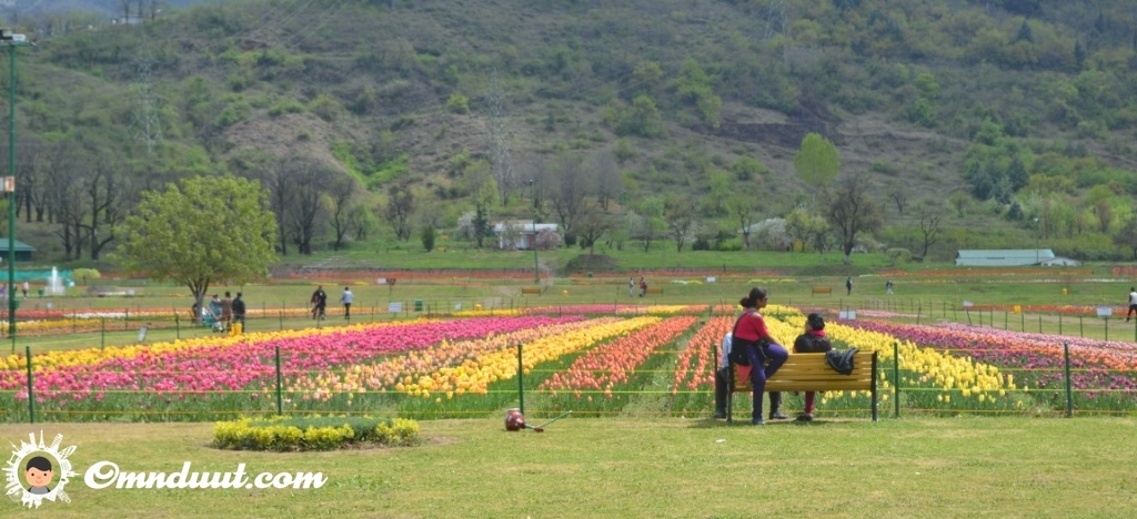 Karena taman tulip ini terletak tepat di kaki bukit Zabarwan. Gugusan bukit sepanjang 32 kilometer yang membentang dan menghiasi panorama kota Srinagar. Jadi, selain melihat taman yang elok dan cantik, pengunjung juga dihadiahi pemandangan perbukitan yang sebagian puncaknya terselimuti salju. Bukan main indahnya!