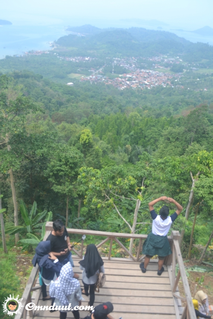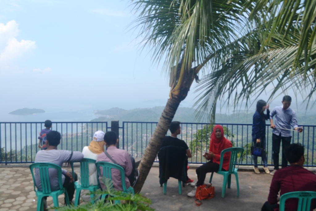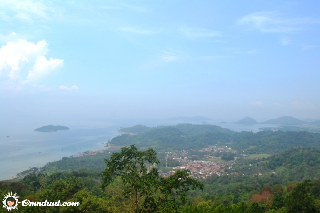 Area itu berupa pijakan lingkaran di sebuah pagar. Dari atas sana, panorama Teluk Lampung dan gugusan Pulau Kubur, Pulau Tangkil dan Pantai Mutun (yang kesemuanya berada di pesisir Pasawaran) nampak terlihat jelas. Ingin rasanya joget India di atas sana. Berhubung Kajolnya nggak ada, aku pending dululah ya bray.