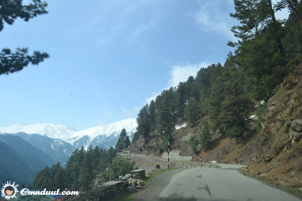 Panorama sepanjang perjalanan itu indahnya kebangetan. Gunung-gunung yang terselimuti salju bikin hati jadi tenang, nyaman dan adem (andai kamu ada di sisiku, Neng!) Kondisi jalanan cukup baik dan lebar. Lalu lintas juga tidak terlalu ramai, walau begitu tetap deg-degan juga sih karena salah satu sisinya jurang. Aku ingat betul, bahkan saat kami ke sana, ada satu mobil sedan yang jatuh ke dalam jurang. Untung jurangnya tidak terlalu dalam. Piuuh.