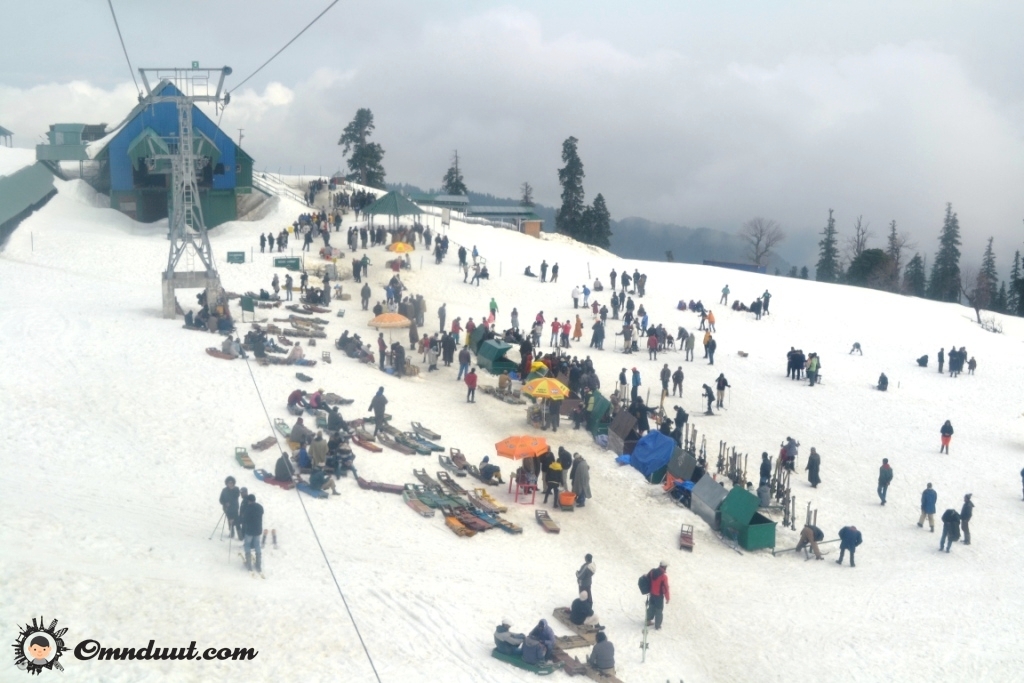 Kami berjalan sekitar 20 menit menuju stasiun gondola. Nah, seperti yang kubilang di awal, oncak­-nya (baca : andalan utama) Gulmarg ini adalah gondola yang terbagi dalam 2 fase pemberhentian. Kami berenam sendiri sudah memesan tiket di kantor TRC. Yup, TRC juga bersedia membantu pelancong untuk memesan tiket gondolanya. Pembayarannya menggunakan kartu kredit. Simpel banget!
