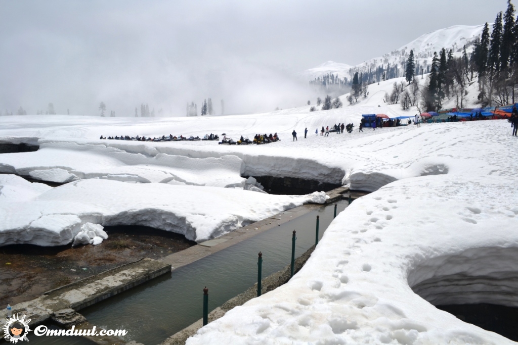 Hamparan salju membentang di sepanjang pandangan. Nggak usah jauh-jauh menuju ke tengah untuk menyentuh salju, cukup berjalan di pinggiran jalan dan hap (hei, ini bukan hap-nya ala ala babang Ipul), sentuh deh itu saljunya dan… honestly, itu saljunya aku icip! Norak? Bodok! Wong ke Gulmargnya pakai duit sendiri haha. -Alhamdulillah udahnya nggak sakau eh keracunan salju hehe.