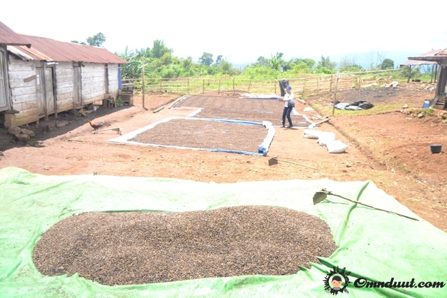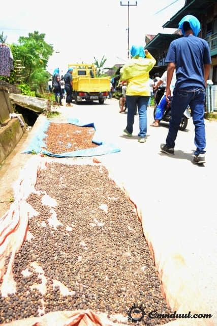 Hoho, memang, begitulah pemandangan yang terlihat saat melintasi daerah-daerah penghasil kopi. Aku sendiri awalnya merasa heran, kok iya kopinya dijemur di tengah jalan gitu. Ternyata sengaja dilakukan untuk sekaligus mengelupas kulit kopi. Sayangnya, cara yang dilakukan penduduk tersebut adalah cara yang salah dan dapat menurunkan kualitas dan harga jual kopi.