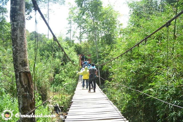 Gagal mengunjungi Jarai, Alhamdulillah aku dan rombongan dapat mengunjungi kebun kopi lainnya yang berada di desa Bumi Agung. Aku suka main-main ke kebun kopi yang ada di desa Bumi Agung ini. Soalnya, untuk mencapai lokasi, kami harus melewati anak sungai dan harus meniti jembatan gantung. Lumayanlah, bisa pose ala-ala hehehe.