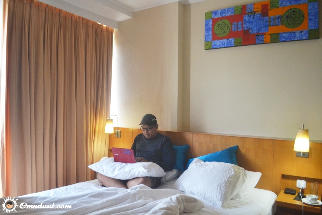 Nyantai sambil berselancar di kamar hotel. Wifinya lumayan.