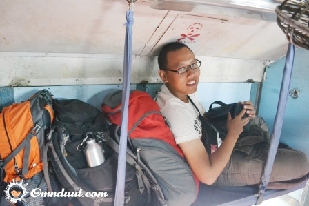 Backpackingnya aku ya begini hehehe. Ini di kereta api India.