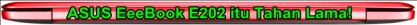 Tapi, baru dipake nonton film dikit aja udah koit. Nyari colokan nggak ada. Nah, ASUS EeeBook E202 ini punya masa aktif baterai hingga 8 jam! Bayangin, bisa nonton berapa film Mi* Kha***a tuh? –istighfar.