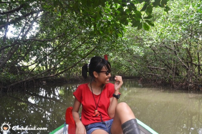 Belum pernah aku merasakan sensasi petualangan semacam itu. Coba lihat foto yang ada, ujung dahan masing-masing bakau yang berada di sisi kanan dan kiri kanal bertemu di satu titik sehingga kanal ini membentuk sebuah terowongan. Wow, terakhir kali aku masuk ke terowongan air semacam ini waktu balita di TMII kayaknya hahaha.