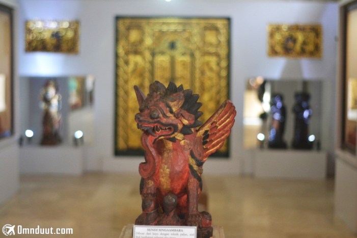 Patung Sendi Singaambara yang melambangkan kekuatan, kekuasaan dan jiwa kesatria ini menjadi salah satu benda seni yang dipamerkan.