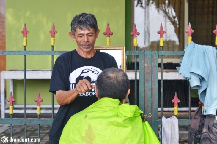 Cuaca sangat bersahabat saat itu. Saya melewati trotoar sambil menikmati hembusan angin. Kehidupan warga lokal tergambar baik di sini. Tukang becak duduk sabar menunggu calon pengguna, sebagian lagi menunggu di warung kecil sambil ngopi. Namun ada satu hal lagi yang sangat menarik perhatian, yakni keberadaan “Cukur Neng Ngisor Ringin” atau tukang cukur di bawah Pohon Beringin.