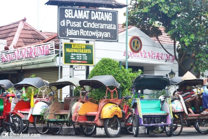 Deretan becak berbentuk khas Yogakarta di sekitaran keraton.