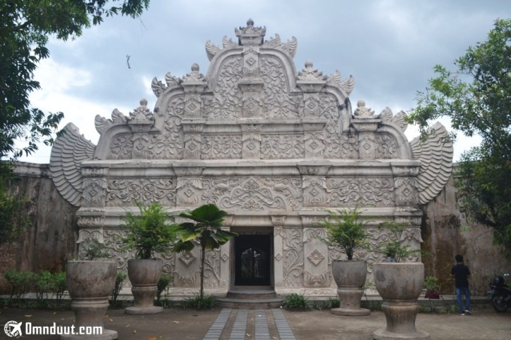 Sebuah gerbang dengan ukiran indah yang berada di kawasan Taman Sari.