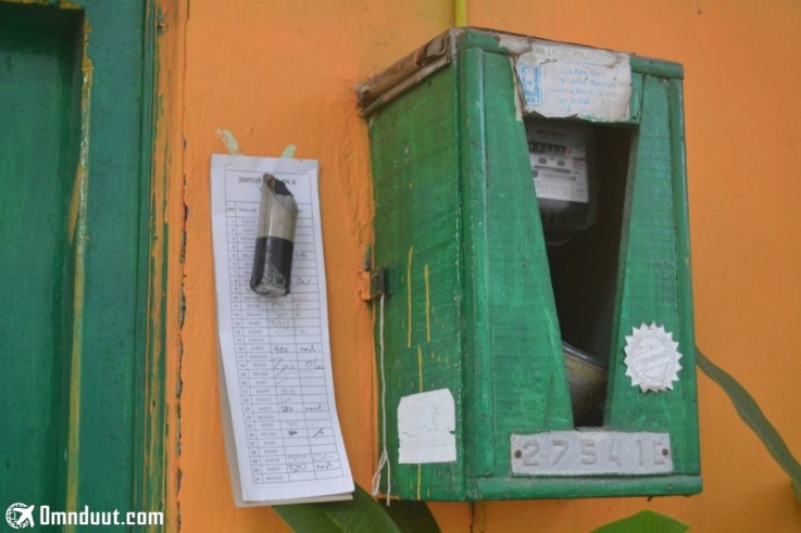 Di setiap rumah, ada tabung kecil yang terbuat dari bambu seperti ini. Setiap hari, ada petugas datang untuk mengambil uang yang diberikan oleh pemilik rumah.