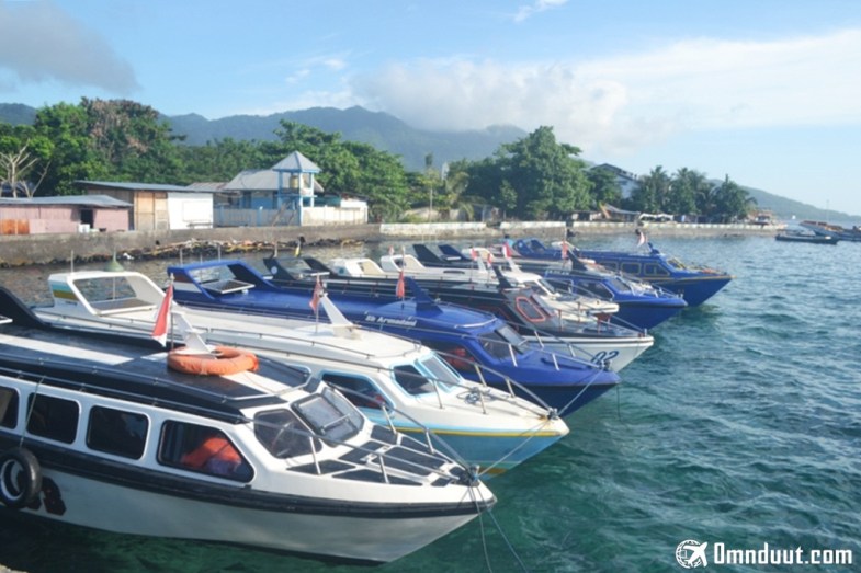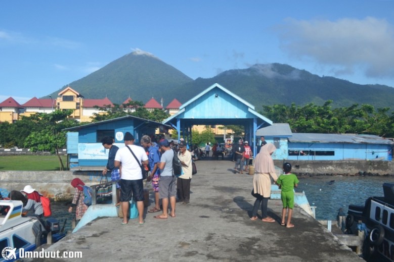 Setelah melewati puluhan pemberhentian di sekitaran Pantai Tugulufa akibat oknum-oknum banci kamera, akhirnya kami tiba di Pelabuhan Goto. Pelabuhannya kecil dan sederhana. Hanya ada bangunan semi permanen dengan seorang penjaga berwajah seram –namun giginya cemerlang karena rajin disikat pake odol, yang sudah siap mencegat kami di sebuah kursi dan meja kecil.