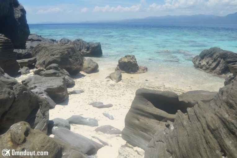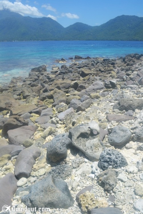 Di beberapa bagian pantai memang berbatu. Tapi malahnya jadi kelihatan makin cakep! Hanya memang terumbu karangnya tidak sebanyak dan secantik seperti yang ada di Tanjung Konde yang kami kunjungi beberapa hari sebelumnya. Hmm, mungkin karena jenis karangnya juga beda kali, ya!