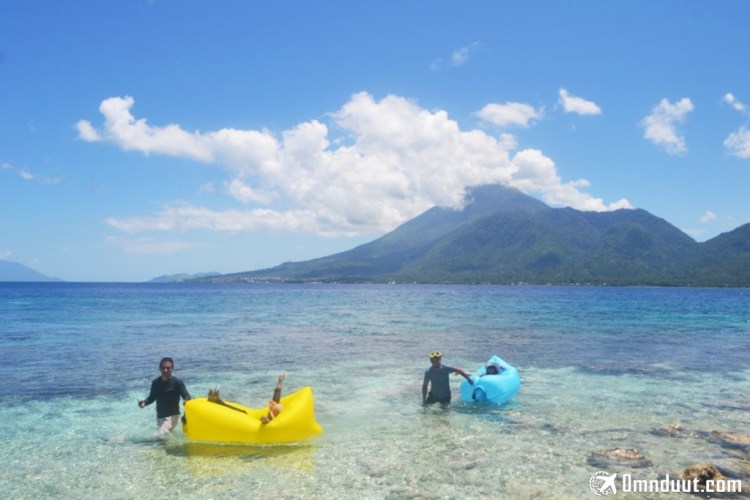 Selesai makan ngapain? Ya berenang lagilah! Kulit gosong gakpapa. Lagian kalau habis jalan ke Indonesia timur gak gosong ntar dikira halu, kan? Sehabis makan, kita secara bergantian menggunakan lazy bag demi foto ala-ala yang cetar di instagram.