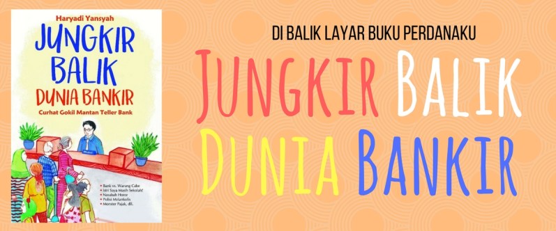 Jungkir Balik Dunia Bankir adalah karya saya yang sederhana. Karya yang saya tulis dengan jujur karena semua cerita yang ada, betul-betul saya alami saat dulu bekerja sebagai teller. Bahkan, nama-nama tokoh yang ada di sana, benar-benar ada (hanya saya modifikasi sedikit, seperti Yudi jadi Iyus) dan sebagaian besar wajahnya dapat kalian lihat di postingan ini.