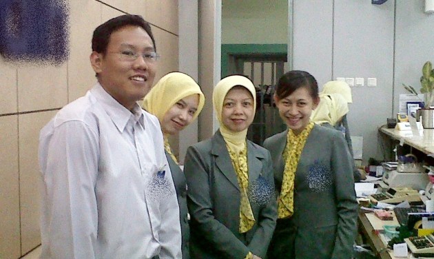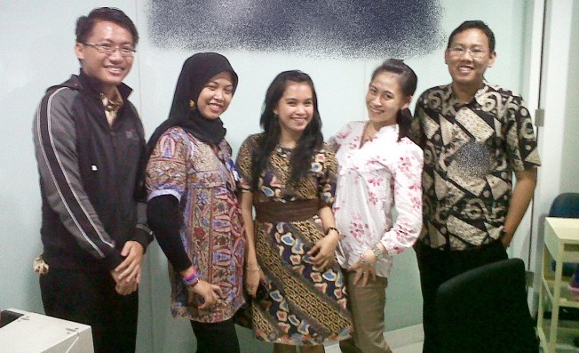 Kartini day! jadi melayani nasabahnya berpakaian kayak gini. Udah tahu aku yang mana? hehehe. Sebagian besar orang yang ada di sini muncul di buku.