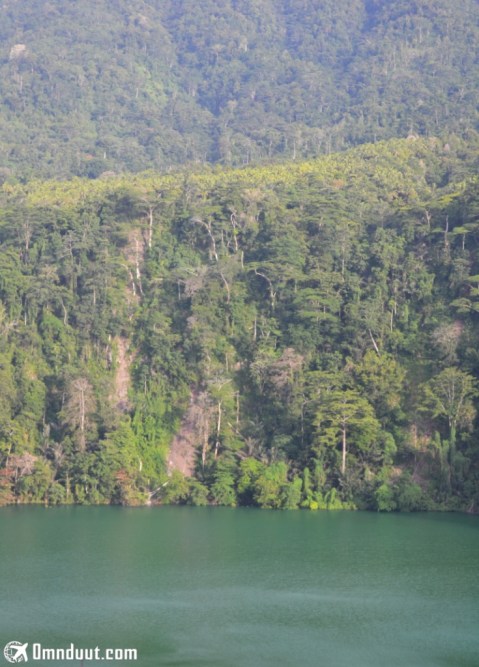 Baru kali ini saya melihat danau yang bentuknya seperti ceruk atau loyang raksasa. Danaunya lumayan luas, sekitar 5 hektare dengan kedalaman sekitar 50 meter. Mangtaabs! Konon, danau ini langsung berhubungan dengan laut. Keren gak tuh!