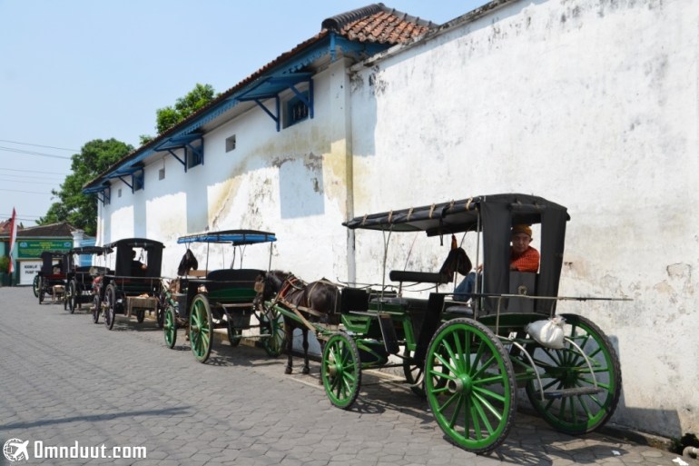 Saat saya dan rombongan lewat ke sana, ada beberapa kereta kuda yang terparkir di sana. Namun, itu adalah kereta kuda wisata yang dapat digunakan wisatawan untuk berkeliling ke sekitaran area keraton. Nampak juga beberapa pedagang yang menggelar lapak di jalan. Barang yang dijual pun seragam. Rata-rata, mereka menjual seruling, hiasan dinding/langit-langit ruangan dan juga pajangan.