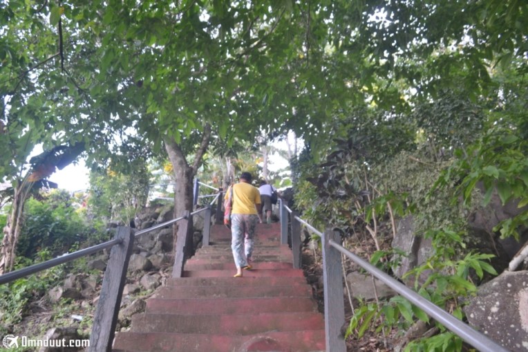 Padahal aslinya dengkul udah ngilu dan napas sudah memburu. Tapi wajah harus tetap disetel ganteng, dong, ah. Haha. Dan, setelah meniti satu demi satu anak tangga, tibalah saya di bagian atas Benteng Tahula ini. Eh, sebelum saya kasih intip bagaimana keadaan di atas, saya kasih info dulu tentang Benteng Tahula-nya, ya!