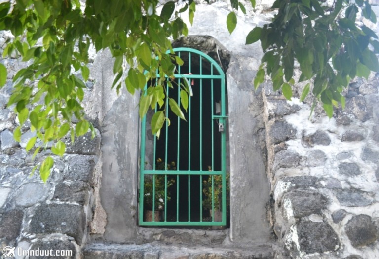 Tepat di bawah benteng terdapat pintu berjeruji yang tertutup rapat. Saya sempat sih melirik ke bagian dalam. Tapi tak melihat apapun karena gelap. Hmm, jadi penasaran pingin masuk walaupun kayaknya jika diizinkan saya nggak mau masuk sendirian wakakak.